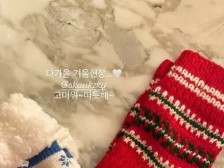 演員宋慧喬公開秀智(原Miss A)送她的襪子。 28日,宋慧喬寫道:“片場冬天來了…謝謝~好溫暖~”