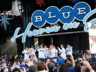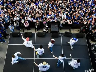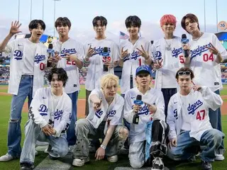 我們TREASURE作為K-POP藝人代表被正式邀請。 「TREASURE」身穿道奇隊制服登台亮相,