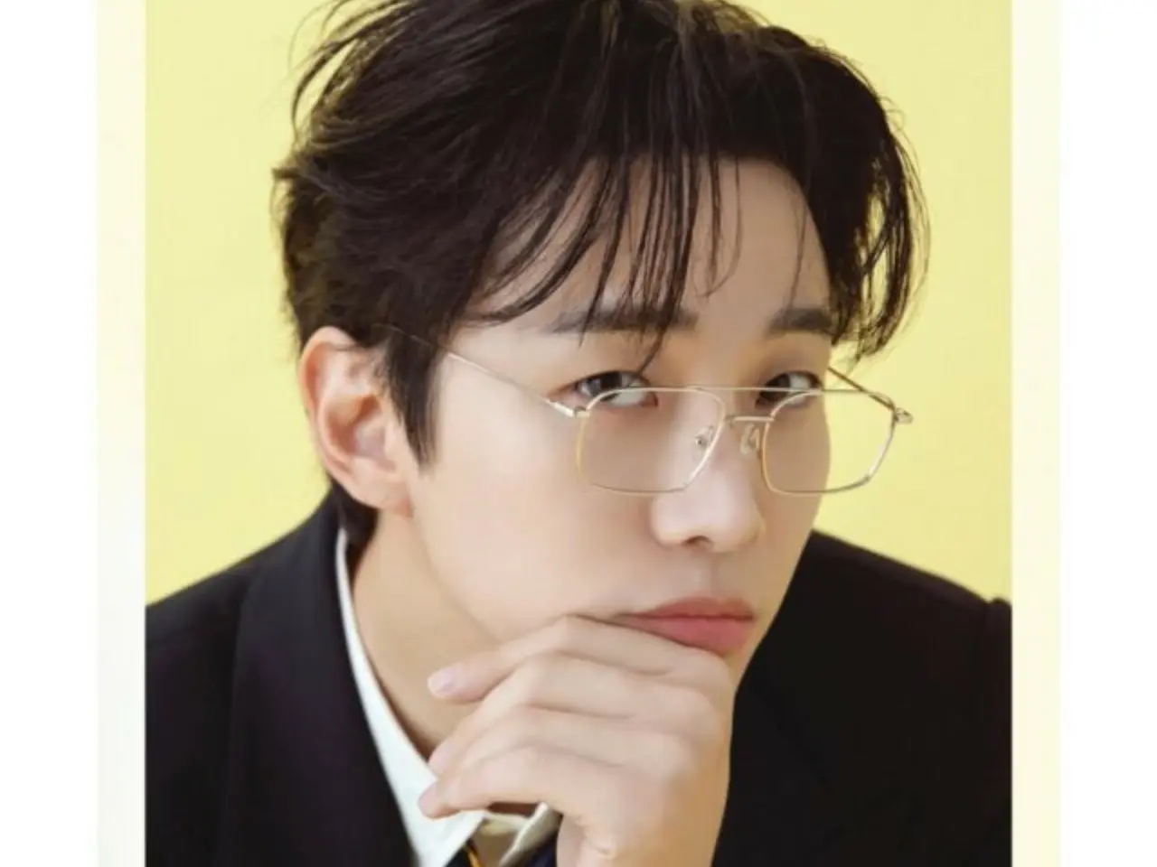 俊昊身穿海軍藍夾克,繫著領帶,散發著知性的魅力。