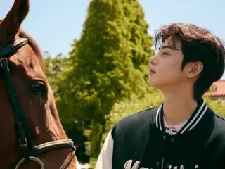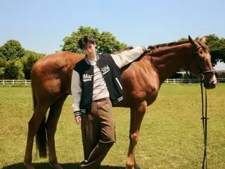 照片中,車銀優與馬一起參加寫真拍攝。車銀優身穿運動夾克,散發著運動魅力。