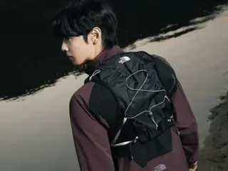 照片中,車銀優站在一座小山頂上俯瞰湖泊。