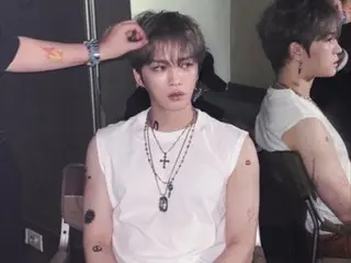 照片中J-JUN只穿著一件白色背心,展現髮型和妝容,坐在床上,吸引了大家的視線。