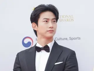 照片中,Tacyeon身穿黑色西裝,繫著領結。 Tacyeon在紅毯上露出了溫暖的笑容,也擔任了主持人。